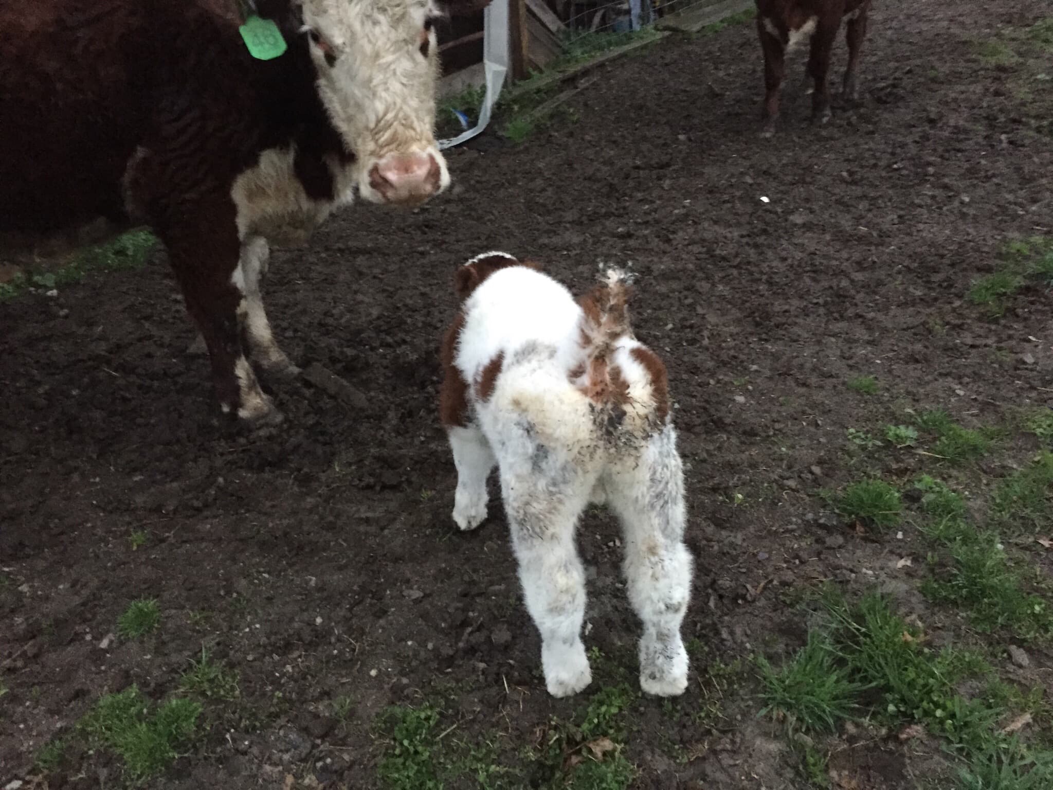 Mab clone x Shorthorn plus (jpj granddaughter)x (about time Hereford) bull calf 71 pounds unassisted Drew Powley-Ohio