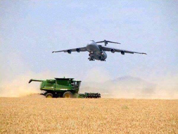 This was posted today on FB . Photo was taken north of the runway at Altus AFB ! Really thought it was awesome to see 2 of the things that made this country great in the same photo !! The US military & the American Farmer !!! — in Altus Air Force Base, Oklahoma.